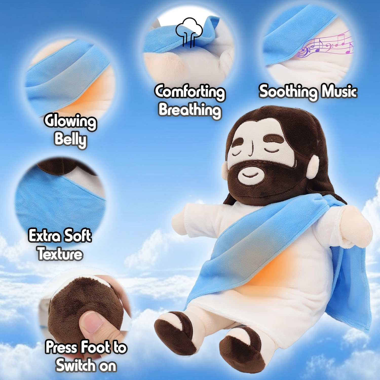 Let the calming rise and fall of our Breathing Buddy Jesus bring you peace and releive you of your worries whilst you sleep.