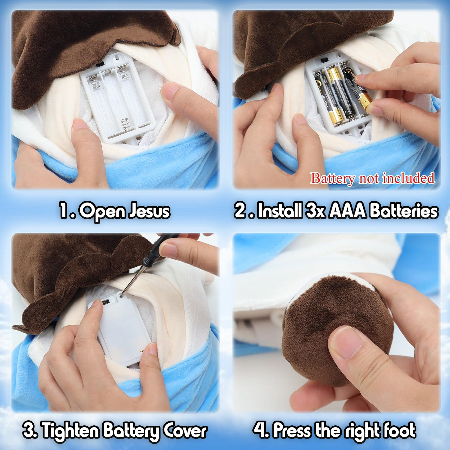 Let the calming rise and fall of our Breathing Buddy Jesus bring you peace and releive you of your worries whilst you sleep.